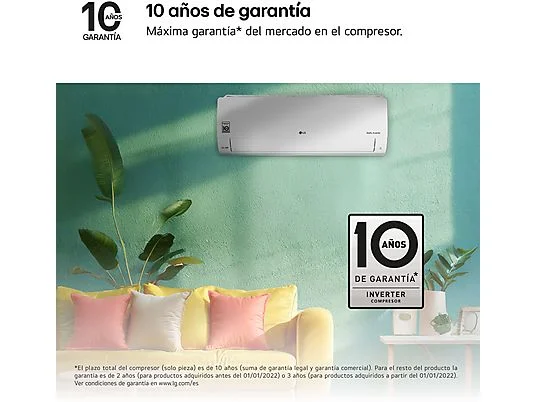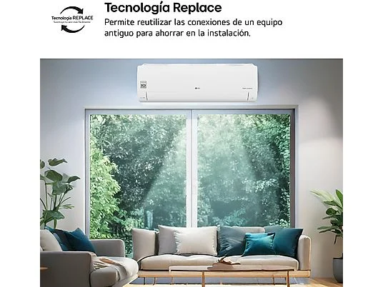 Aire acondicionado Split 1 x 1 - LG PLUSWF09X, 2150 fg/h, Gold Fin™, Tecnología Replace, Wi-Fi, Blanco