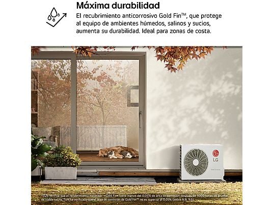 Aire acondicionado Split 1 x 1 – LG PLUSWF09X, 2150 fg/h, Gold Fin™, Tecnología Replace, Wi-Fi, Blanco