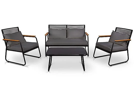 Conjunto de jardín – MC-HAUS OLBIA SET DARK GREY, Mesa + Sofá + 2 Sillones, montaje fácil, Gris oscuro