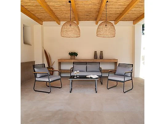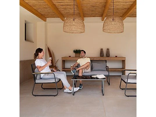 Conjunto de jardín - MC-HAUS OLBIA SET DARK GREY, Mesa + Sofá + 2 Sillones, montaje fácil, Gris oscuro