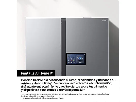 Frigorífico americano – Samsung Bespoke AI RS90F64EETEF, Mono Cooling, No Frost, 178.4 cm, 621 l, Dispensador de agua y hielo, Balda Botellero, Inox