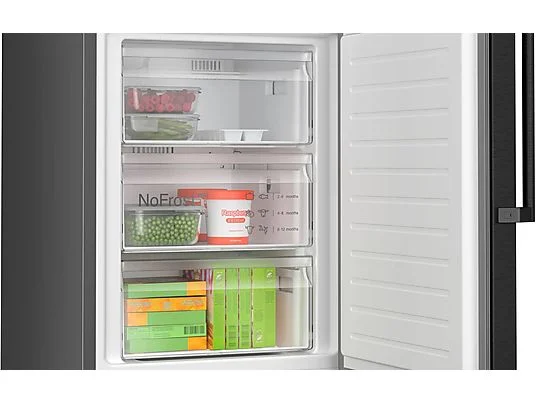 Frigorífico combi – Bosch KGN39VXBT, No Frost, 203 cm, 363 l, Cajón VitaFresh XXL, Iluminación LED, Negro