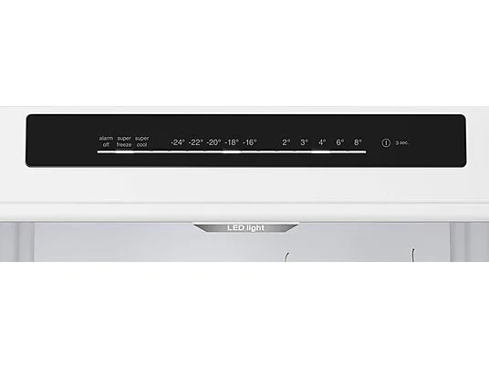 Alarma de avería, Alarma de temperatura, Alarma puerta abierta, Indicador temperatura congelador, Indicador temperatura refrigerador, Interruptor supercongelación, Interruptor superrefrigeración |