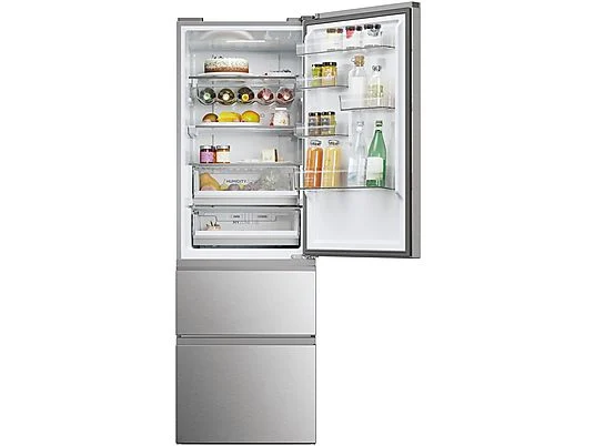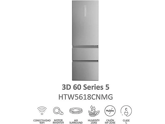 Frigorífico combi – Haier 3D 60 Series 5 HTW 5618CNMG, No Frost, 185 cm, 360 l, Motor Inverter, Wi-fi, Plata