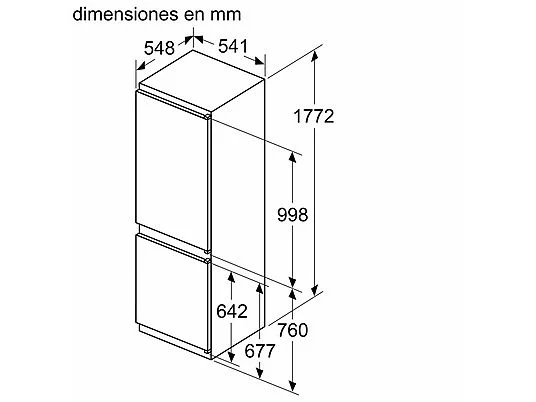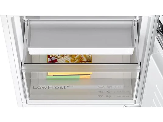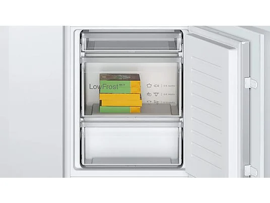 Frigorífico combi integrable – Bosch KIV86VSE0, Low Frost, 277l, VitaFresh XXL, Cajón BigBox, 177.2 cm, Sin panelar