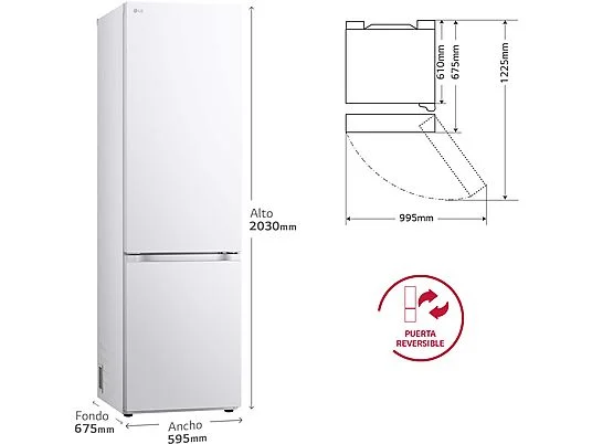 Frigorífico combi – LG GBV5240CSW, Total No Frost, 203 cm, 387 L, DoorCooling+™, FRESHConverter™, Blanco