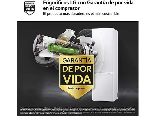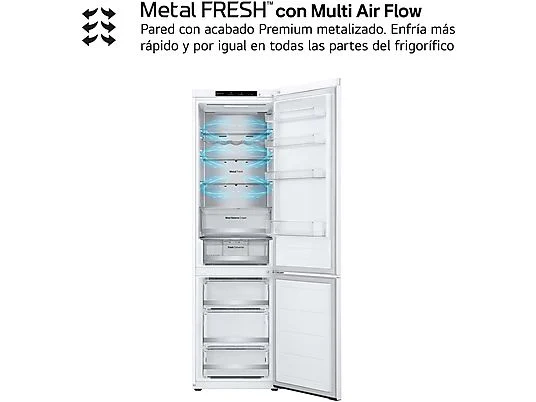 Frigorífico combi - LG GBV5240CSW, Total No Frost, 203 cm, 387 L, DoorCooling+™, FRESHConverter™, Blanco