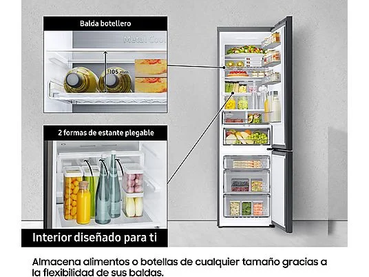 Frigorífico combi – Samsung BESPOKE Smart RB38C7B6BS9EF, No Frost, 203cm, 387l, Twin Cooling Plus, Metal Cooling, WiFi, Inox