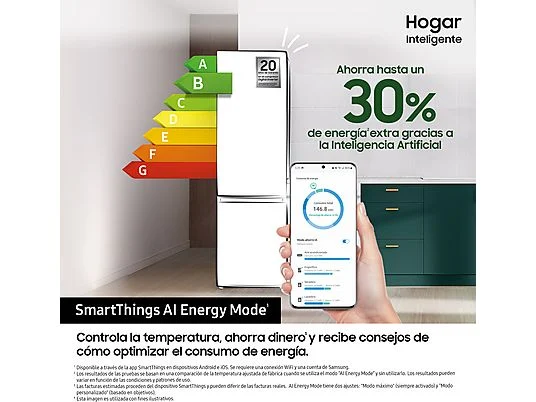 • Frigorífico combi - Samsung BESPOKE Smart RB38C7B6BS9EF, No Frost, 203cm, 387l, Twin Cooling Plus, Metal Cooling, WiFi, Inox