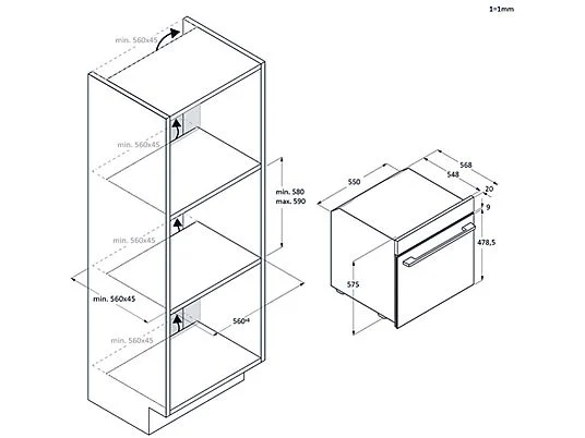 1 x Horno multifunción, Guías telescopias Bandeja 20 / 40 mm Rejilla |