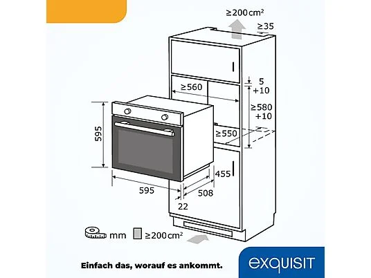 • Horno multifunción - EXQUISIT EBE 255-U-020 Negro, Integrable, 59 l, 595 mm, negro
