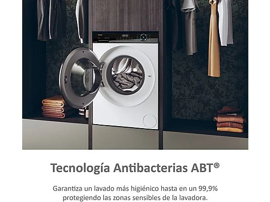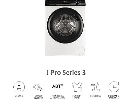 Lavadora carga frontal - Haier I-Pro Series 3 HW90-BP14939-S, 9kg, 1400rpm, Motor Inverter, Vapor, Antibacterias, Blanco