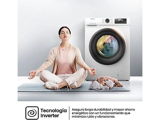 Lavadora carga frontal – Hisense WF1Q8041BW, 8 kg, 1400 Rpm, Función Vapor, Eficiencia A-20%, Blanco