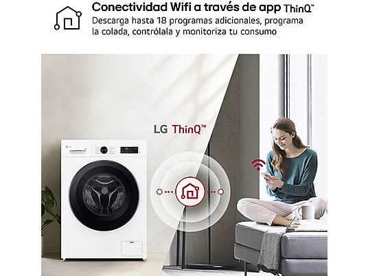 • Lavadora carga frontal - LG F4X1009NWK, 9 kg, 1400 rpm, 10 programas, AI Direct Drive™, Steam™, Blanco Marfil