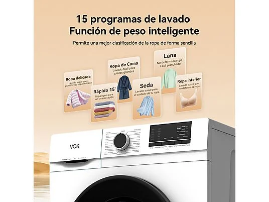Lavadora carga frontal – VOK EVW-7BAWL21N, 7 kg, 1200 rpm, 15 programas, Blanco