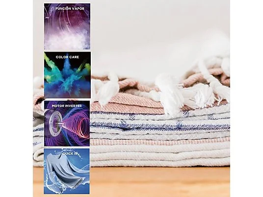 Algodón, Mixto, Lana, Seda, Ropa interior, Ropa delicada, Ropa de cama, Eco 40-60, Rápido 15’, 20º cuidado del color, Vapor, Ropa sucia, Aclarado/Centrifugado, Centrifugado, Limpieza del tambor |