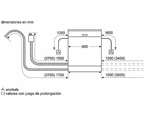 Longitud de la manguera de entrada de agua