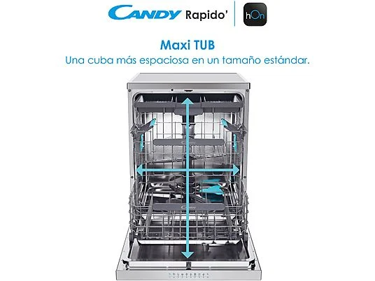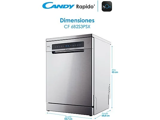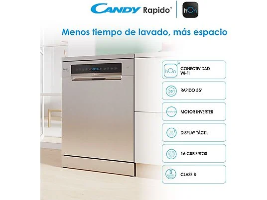 Lavavajillas – Candy Rapido’ CF 6B2S3PSX, 16 servicios, 10 programas, 60 cm, Motor Inverter, Wi-Fi, Inox
