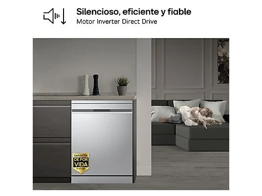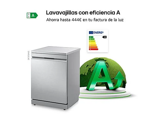 Lavavajillas – LG DF375HVS, 14 servicios, 10 programas, 60 cm, LED táctil, Tercera bandeja, TrueSteam™, QuadWash™, Inox antihuellas