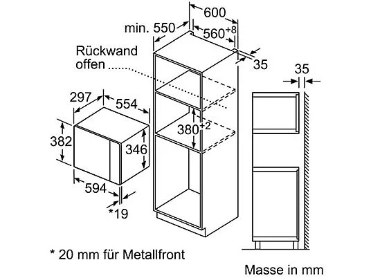 Microondas – BOSCH, BFL520MS0, 20 Litros, 5 Niveles, 800 W, Integrable, Negro