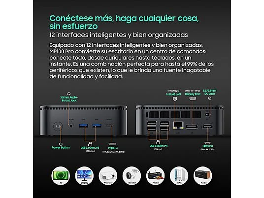 Mini PC – BLACKVIEW MP100 Pro-i9-12900HK, Intel®Alder Lake i9-12900HK (Hasta 5.0GHz), 16 GB RAM, 512 GB SSD, UHD Graphics, Windows 11 Pro, Negra