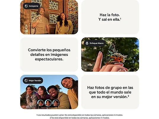 Mejoras en la cámara con IA, Asistente virtual, Procesamiento inteligente del sonido, Reconocimiento de voz |