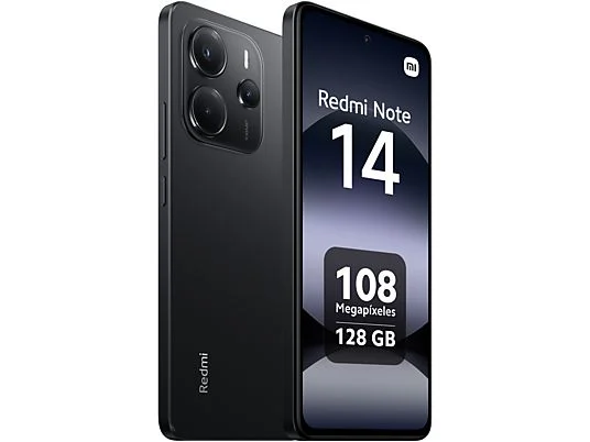 • Móvil - Xiaomi Redmi Note 14, Negro medianoche, 128 GB, 6 GB RAM, 6.67" AMOLED FHD+, MediaTek Helio g99-Ultra, 5500 mAh