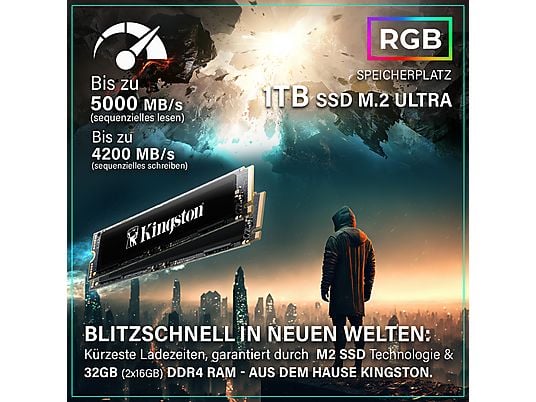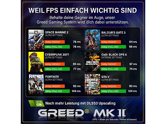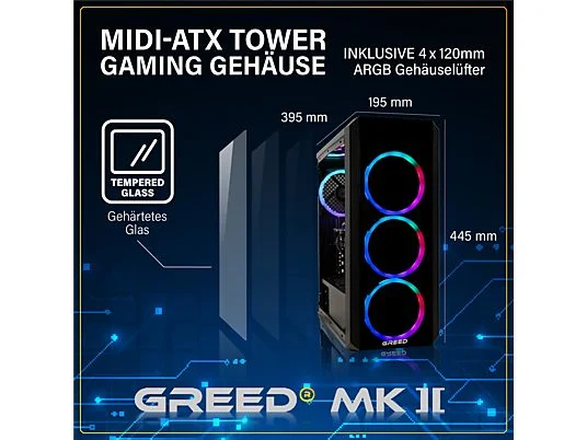 PC Gaming – GREED MK2 AMD | Gaming Ordenador / Computer, AMD Ryzen 7 5700X, 32 GB RAM, 1000 GB SSD, GeForce RTX™ 5060, Windows 11 Pro, Negro