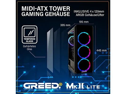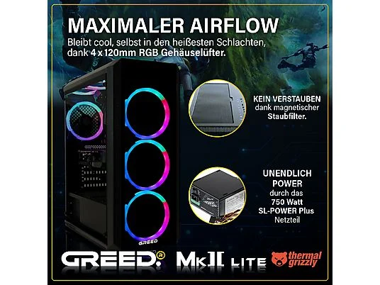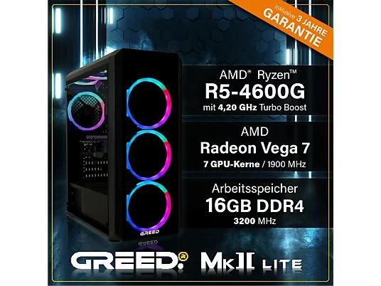 PC Gaming – GREED MK2 AMD Lite, AMD Ryzen 5 4600G, 16 GB RAM, 512 GB SSD, Radeon™ RX Vega 7, Windows 11 Pro, Negro