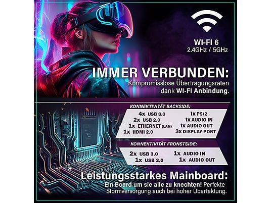 6x USB 3.0 | 3x USB 2.0 | 1x HDMI 2.0 | 3x Display Port | 2x Audio IN | 2x Audio OUT | 1x Ethernet ( LAN) | 1x PS/2 | Wifi |