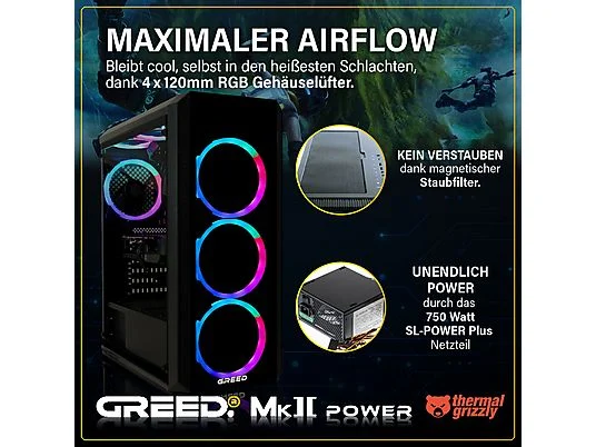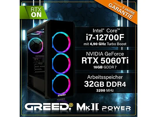 PC Sobremesa – GREED MK2 Power Intel Gaming Ordenador Computer, Intel Core i7-12700F, 32 GB RAM, 1 TB SSD, GeForce RTX™ 5060 Ti, Windows 11 Pro, Negro