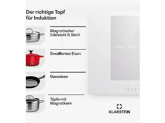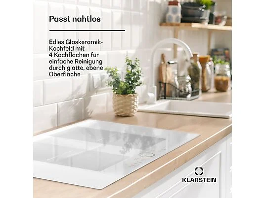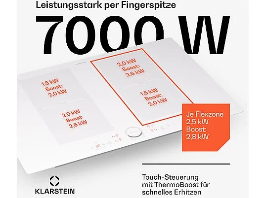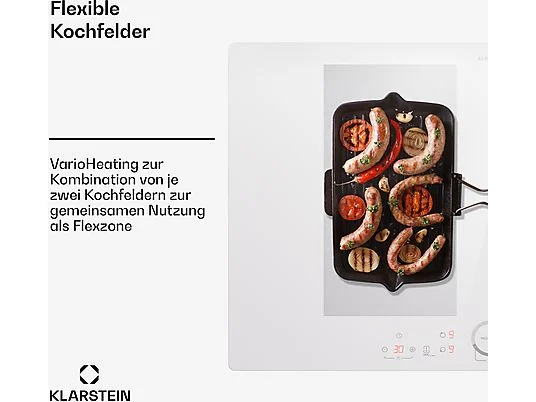 Placa de inducción – KLARSTEIN Delicatessa 77 Flex, 4 zonas, 77 cm, Blanco