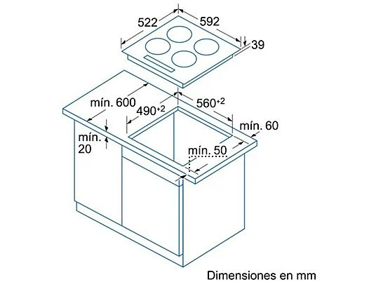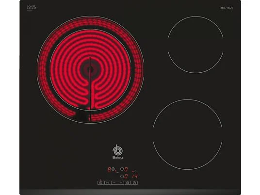Placa vitrocerámica – Balay 3EB715LR, 3 zonas, 60 cm, Biselado delantero