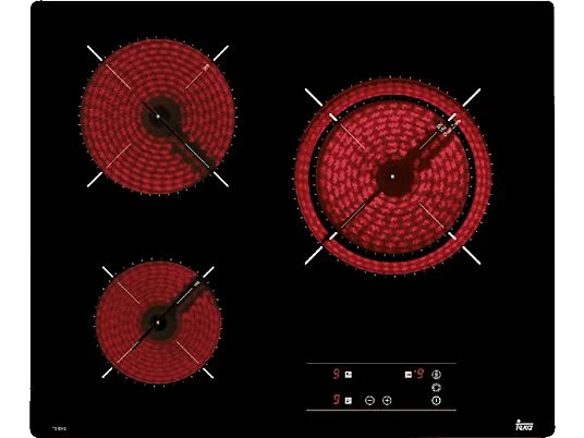 Placa vitrocerámica – Teka TB 6315, 3 zonas, Zona grande 27 cm, Touch Control, 60 cm, Negro