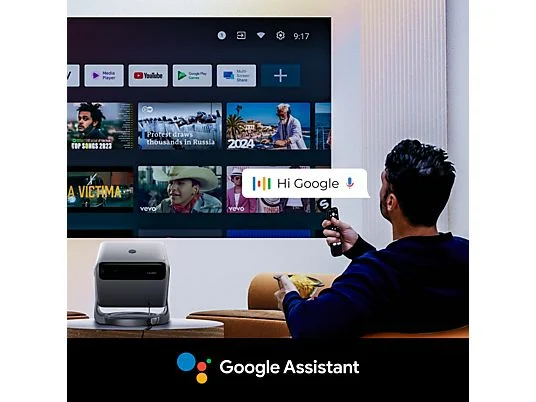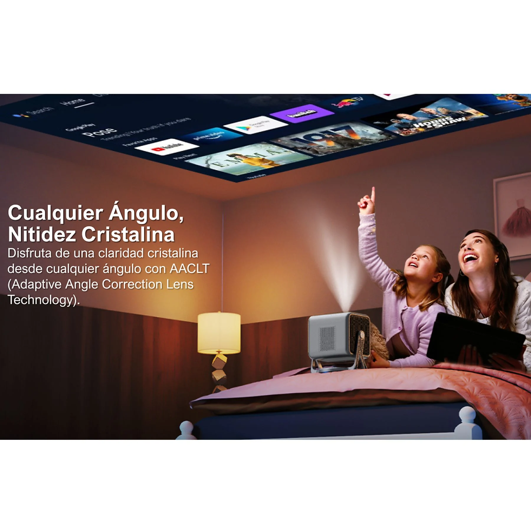 Autorización oficial Android TV 11.0; cardán de 90° sin soporte; Dolby Audio;Bluetooth 5.3; 1080P nativos&600 ANSI lúmenes; autoenfoque 2S y corrección trapezoidal 6D; motor óptico cerrado;
