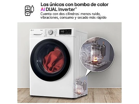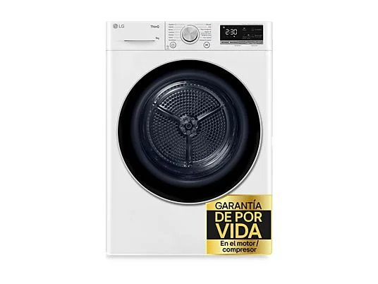Secadora bomba de calor – LG RH90V9AV3N, 9 kg, 14 programas, Eco Hybrid™, ThinQ™, Blanco