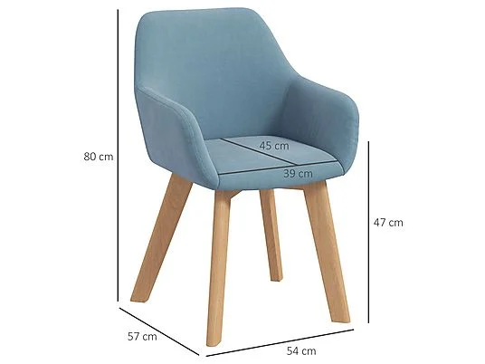 HOMCOM Pack de 2 Sillas de Comedor Modernas Sillas de Cocina Tapizado en Terciopelo con Respaldo Reposabrazos y Patas de Madera Carga 120 kg para Salón Dormitorio 54x57x80 cm Azul Claro |