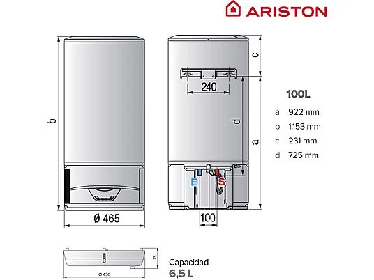 Termo eléctrico – LYDOS HYBRID 100L + VASCHETTA COND. + INSTAFIX ARISTON, 100 l, Blanco
