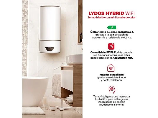 Termo eléctrico - LYDOS HYBRID 100L + VASCHETTA COND. + INSTAFIX ARISTON, 100 l, Blanco