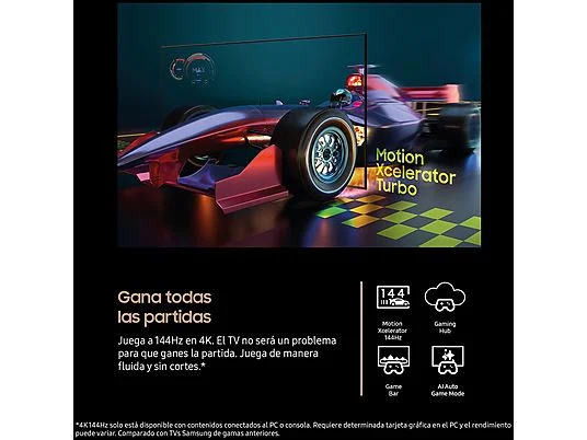 Dolby Atmos, OTS Lite, Q-Symphony, Tipo de altavoz 4CH, Amplificador Voz Activa Pro, Adaptive Sound Pro, Interacción por voz a larga distancia, Funciona con altavoz de IA, Gaming Hub, Multi Device Experience, Multi-View, Apple AirPlay, Daily+, Storage Share, Live Translate, Click to Search, Generative Wallpaper, Karaoke Mic |