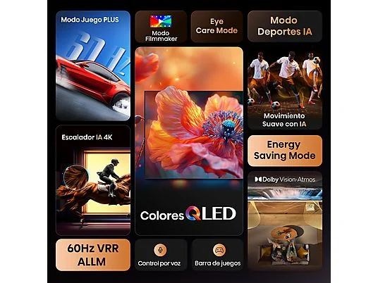 TV QLED 55″ – Hisense 55E7Q, UHD 4K, Quad Core/MT9603, IA 4K Upscaler, Modo Juego Plus, Sensor de luz, Negro