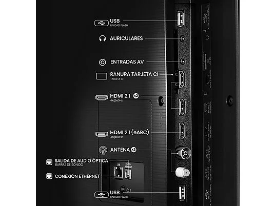TV QLED 55" - Hisense 55E7Q, UHD 4K, Quad Core/MT9603, IA 4K Upscaler, Modo Juego Plus, Sensor de luz, Negro