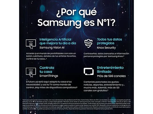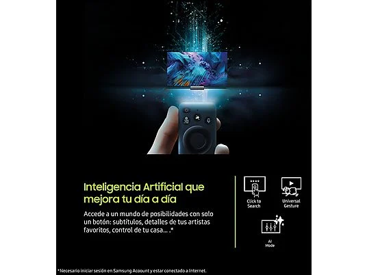 • TV QLED 65" - Samsung TQ65Q7F5AUXXC, QLED 4K, Q4 AI Processor, Smart TV full AI, Negro